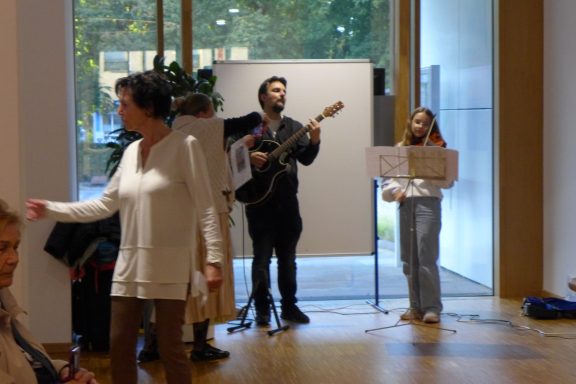 Bei der gut besuchten Vernissage waren alle acht Ausstel-ler anwesend und wurden im festlichen Rahmen kurz-weilig reihum von den Vorständen der beiden Vereine vorgestellt. Anschließend nutzten die zahlreichen Besu-cher die Gelegenheit, mit den Ausstellern ins Gespräch zu kommen und zeigten sich beeindruckt von den vielen Facetten lokaler Kunstschaffender. Musikalisch begleitet wurde die Veranstaltung durch ein Trio mit Werner Pichl, dem Musikschullehrer Stephan Kramer und dem ehemaligen Musikschullehrer Lionel Roche.