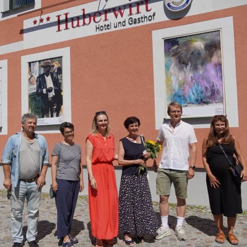 Dem 70 Jahre alten leerstehenden Gebäude des ehemaligen Hotels Huberwirts in Eching haben wir neues Leben eingehaucht. Die Fenster im Unter-geschoss wurden zu Bilderrahmen umfunktioniert und dienen nun als Freiluftgalerie für lokale Kunstschaffende. Damit versuchen wir, den behördlich auferlegten Stillstand zu beleben und das Gebäude in der Mitte unseres Ortes zu nutzen als Projektionsfläche für unterschiedliche Kunstwerke.